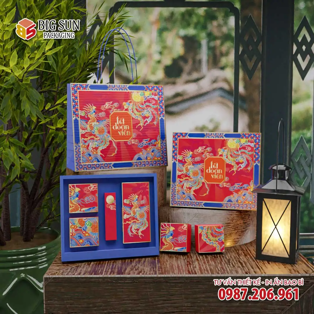 Bigsun xin giới thiệu đến quý khách hàng đang có nhu cầu in hộp Trung Thu cho năm 2025 mẫu hộp vô cùng ấn tượng mang tên Tết Đoàn Viên. Cái tên ấn tượng đúng với ý nghĩa của ngày Tết Trung Thu và nổi bật hơn nữa là những họa tiết tinh xảo, tỉ mỉ mang đậm chất Tết Việt. Cùng chiêm ngưỡng bộ sưu tập đẹp mắt này bạn nhé!