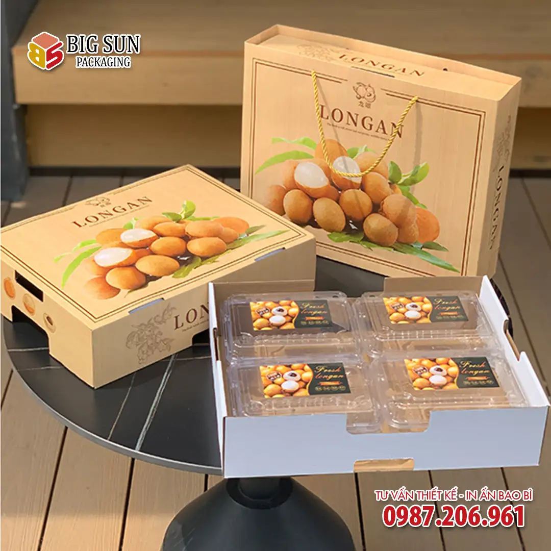 Trong xu hướng tiêu dùng hiện đại, một món quà nông sản không chỉ cần chất lượng bên trong mà còn đòi hỏi sự tinh tế ở hình thức bên ngoài. Hiểu được điều đó, thiết kế hộp carton đựng nhãn họa tiết vân gỗ đã ra đời, mang đến một diện mạo mộc mạc, gần gũi nhưng không kém phần sang trọng để nâng tầm giá trị cho những chùm nhãn ngọt lành.