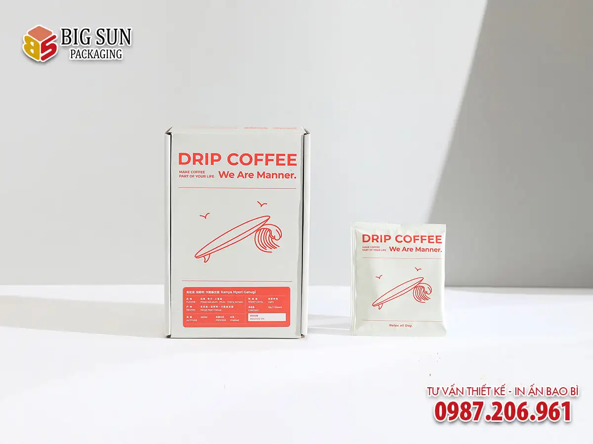 Trong thế giới thưởng thức cà phê hiện đại, Drip Coffee (cà phê túi lọc) đang trở thành một xu hướng được ưa chuộng bởi sự tiện lợi và hương vị nguyên bản. Tuy nhiên, để giữ trọn vẹn hương thơm quyến rũ và tạo ấn tượng mạnh mẽ với khách hàng, vai trò của hộp giấy đựng cà phê là vô cùng quan trọng. Một bao bì đẹp không chỉ bảo vệ sản phẩm mà còn là lời khẳng định đẳng cấp của thương hiệu.