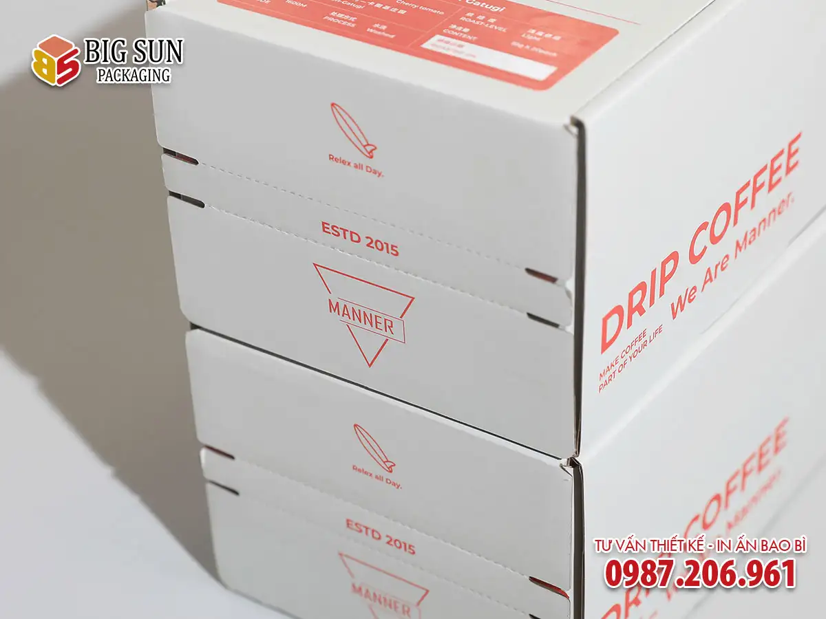 Dịch vụ in hộp giấy đựng cà phê chuyên nghiệp tại Big Sun