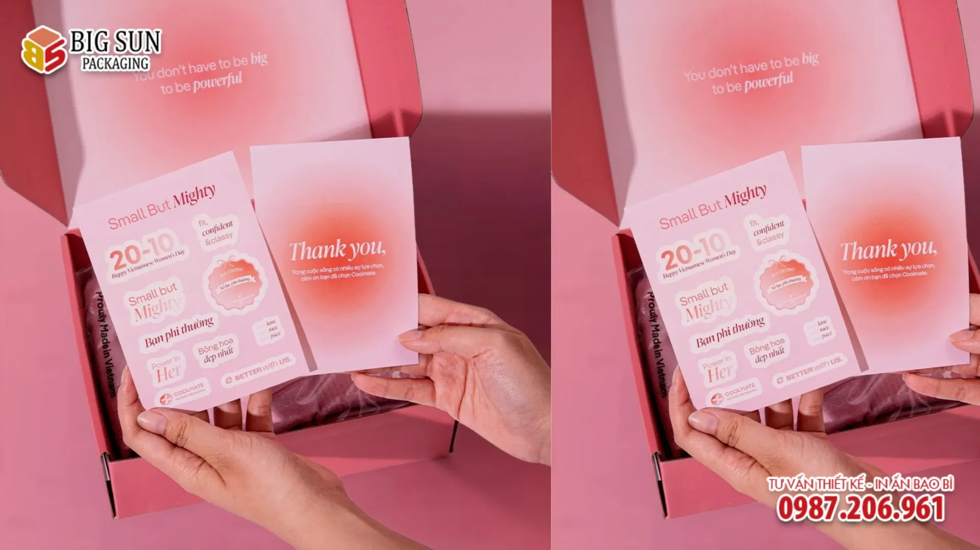 • Tư duy thiết kế đột phá: Chúng tôi không chỉ in ấn, chúng tôi cùng bạn xây dựng câu chuyện thương hiệu trên từng nếp gấp hộp. Đội ngũ sáng tạo tại Big Sun luôn cập nhật những xu hướng bao bì mới nhất trên thế giới để áp dụng vào sản phẩm của bạn.