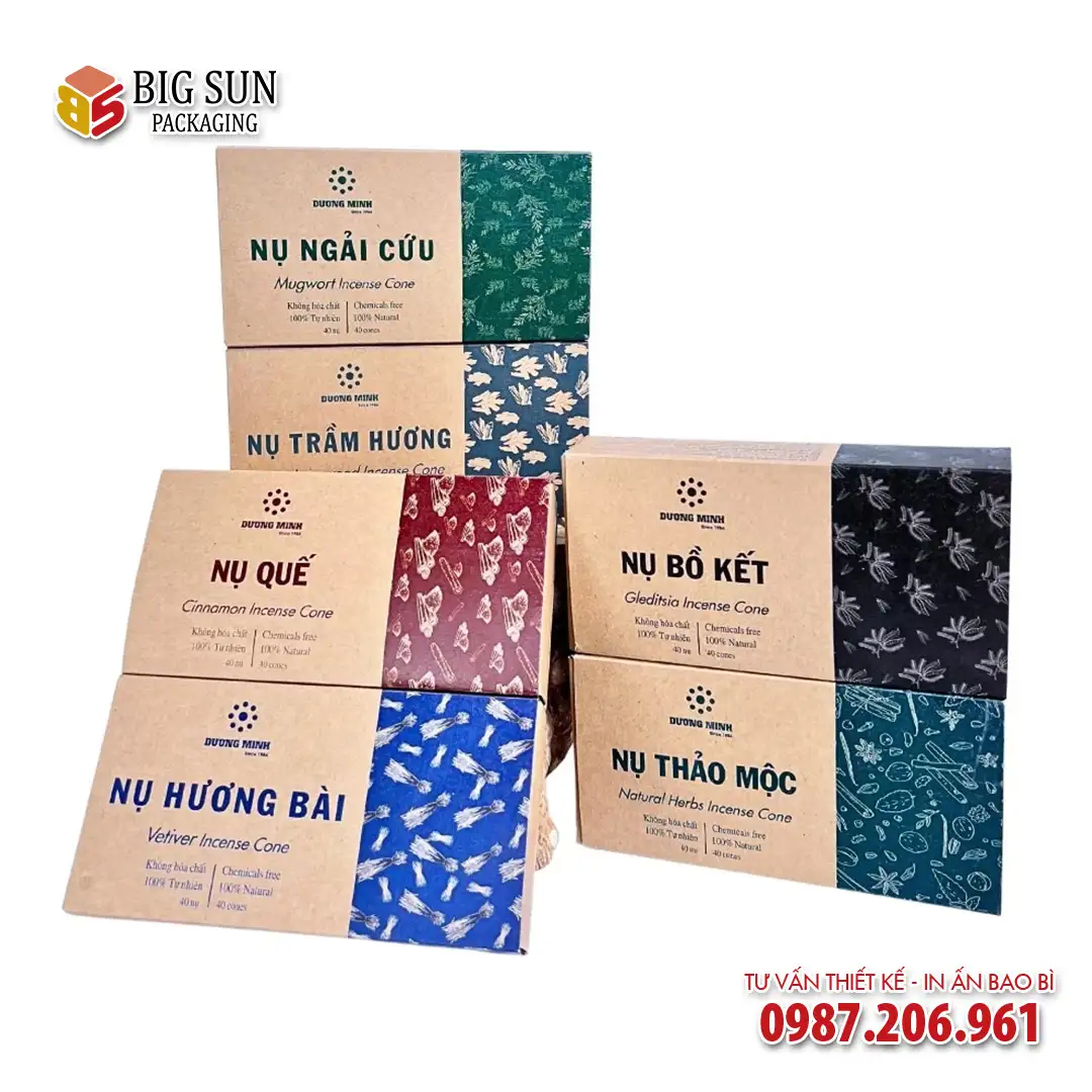 Trong thế giới hương liệu tự nhiên, sự đa dạng của các loại nhang nụ thảo mộc – từ trầm hương, quế, ngải cứu đến bồ kết, hương bài – mang đến cho người dùng những trải nghiệm phong phú. Tuy nhiên, điều này cũng đặt ra một thách thức lớn cho các thương hiệu: Làm thế nào để tạo ra một dòng bao bì vừa thể hiện được đặc tính riêng của từng mùi hương, vừa giữ được sự đồng bộ và nhận diện thương hiệu mạnh mẽ?