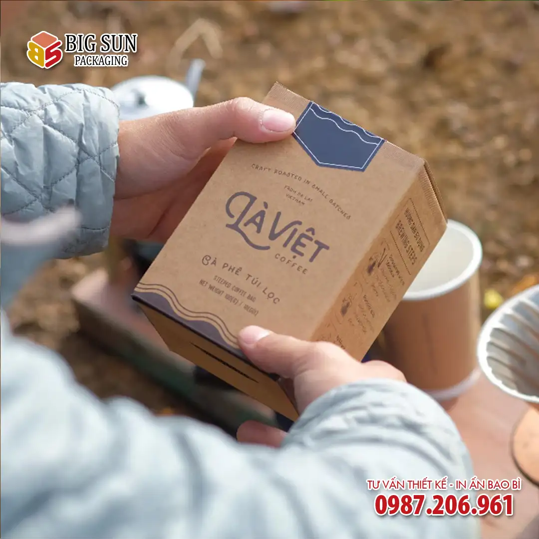 Thành công của một mẫu bao bì không chỉ nằm ở vẻ ngoài, mà ở câu chuyện nó kể. Với mẫu in hộp giấy đựng cà phê túi lọc Là Việt, Big Sun đã tỉ mỉ kết hợp các yếu tố từ màu sắc, kiểu dáng đến chất liệu để tạo nên một đại sứ thương hiệu đầy thuyết phục, chạm đến cảm xúc của khách hàng ngay từ cái nhìn đầu tiên.