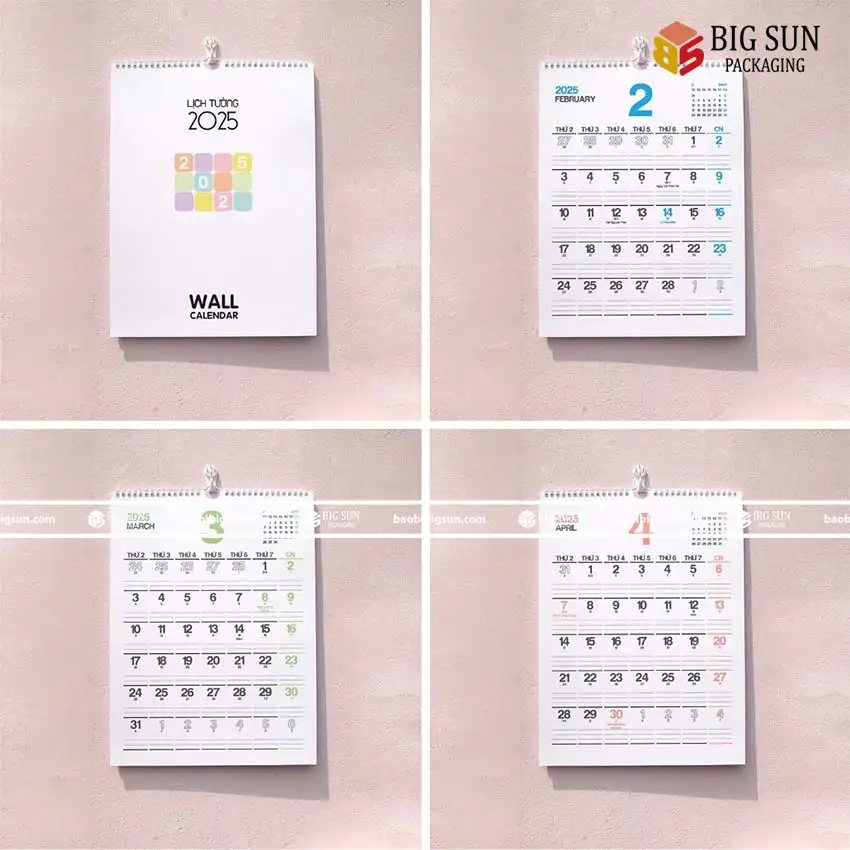 Năm 2025 mang đến những xu hướng thiết kế lịch Tết treo tường độc đáo và mới mẻ. Big Sun cung cấp các mẫu lịch với phong cách đa dạng:
